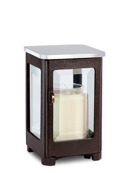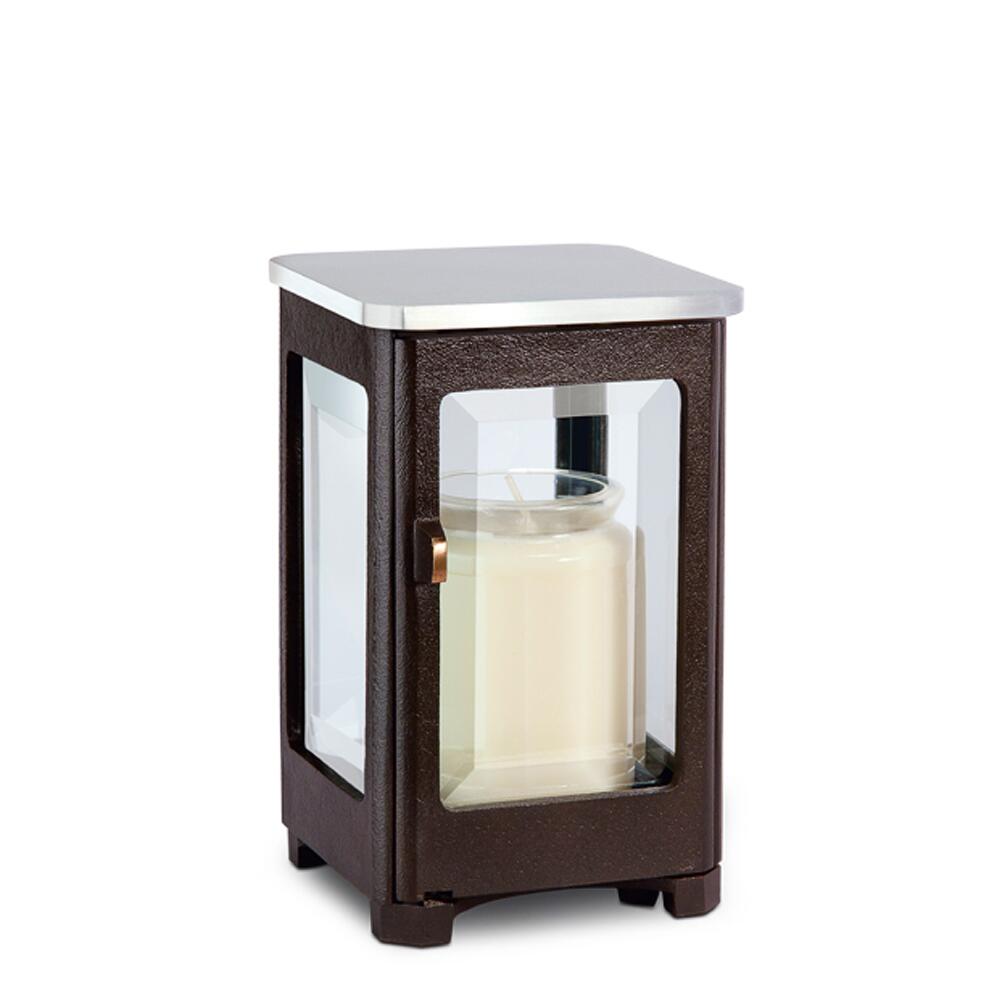 Diese eckige Grab Leuchte wird aus hochwertigem Bronze Guss in traditioneller Handarbeit in einer süddeutschen Bronzegießerei hergestellt. Alle charakteristischen Feinheiten der Grablaterne werden liebevoll bis ins kleinste Detail von Künstlerhand ausgearbeitet. Eine spezielle Oberflächenbehandlung lässt den Korpus der handgefertigten Grableuchten auch nach vielen Jahren noch in ihrem ursprünglichen Glanz erstrahlen und ist unempfindlich gegenüber Verwitterung. In die Laternen können Grabkerzen bis zu einer Höhe von 9cm und einer Brenndauer von 3 Tagen leicht durch Sie eingesetzt werden. Alternativ empfehlen wir die Verwendung eines wartungsarmen LED Lichtes. Um Diebstahl zu vermeiden sollte die Grablampe fest mit dem Untergrund verschraubt werden. Im Lieferumfang sind entsprechende Schrauben und Gewindestifte enthalten. Gerne fertigen wir Ihnen auch einen Naturstein Sockel passend zu Ihrem Grabmal für Ihr neues Grablicht. Dieser wird von uns für die feste Installation der Grableuchte vorbereitet. Ein Ersatzglas können Sie auch nach Jahren noch in unserem Onlineshop günstig nachbestellen. Unsere Grablampen sind in vielen verschiedenen Patina-Varianten herstellbar, sprechen Sie uns gerne darauf an! Die Fertigung mit einer Cortenstahlpatina ist möglich. Im Gegensatz zu richtigem Cortenstahl liegt der Vorteil im Nicht-Verlaufen der Rostpatina bei Nässe.