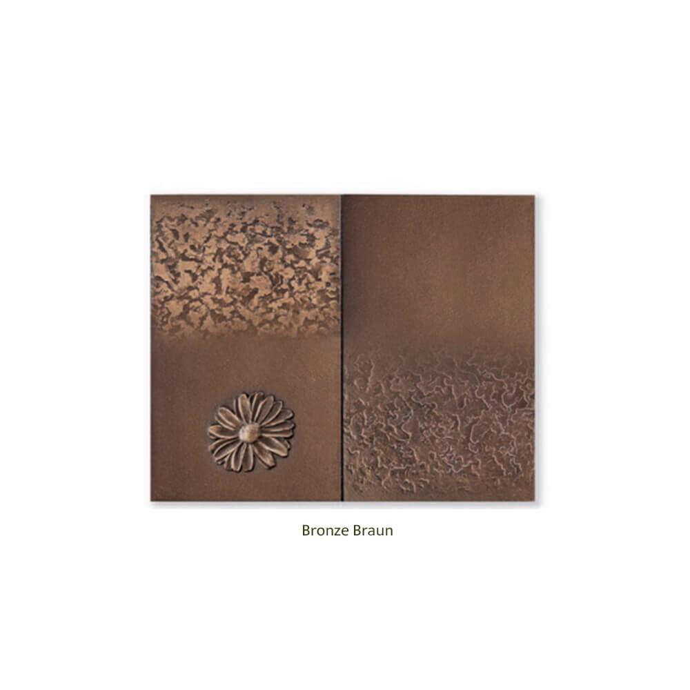 Bei der Gestaltung der Grabanlage steht Ihnen eine Vielzahl an Möglichkeiten zur Auswahl. Dieser Grabschmuck wird aus Bronze angeboten. Für Weichgestein oder andere poröse und wasserziehende Gesteinsarten wird Grabdekoration aus Aluminium oder Edelstahl empfohlen. Die Gedenktafeln werden sorgfältig hergestellt und mit einem Schutzlack versehen. Schmutz sollte mehrmals im Jahr mit einem feuchten Tuch entfernt werden, um die Wirkung des Lacks solange wie möglich aufrechtzuerhalten. Reinungsmittel sind nicht erforderlich. Die Fertigung mit einer Cortenstahlpatina ist möglich. Im Gegensatz zu richtigem Cortenstahl liegt der Vorteil im Nicht-Verlaufen der Rostpatina bei Nässe.