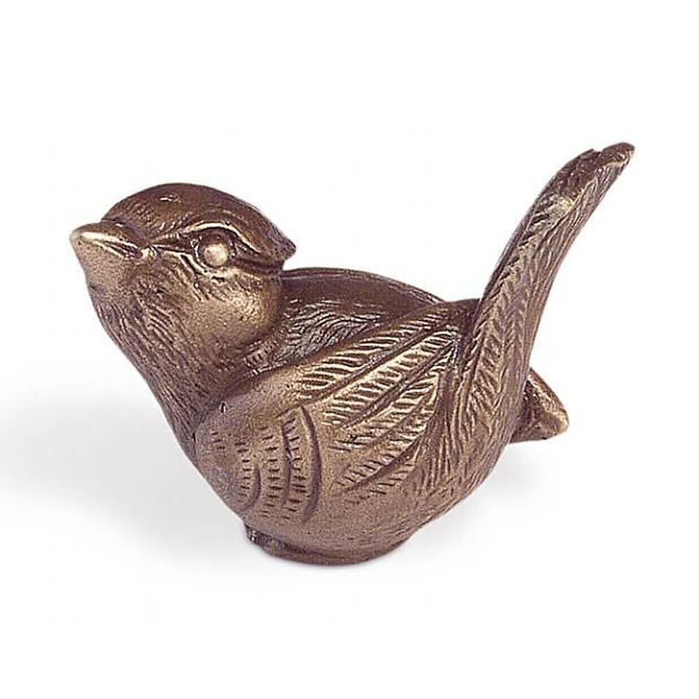 Die Bronze ist extrem robust gegenüber Frost, Nässe sowie Hitze und sehr langlebig. Die Patina wird per Hand aufgetragen und führt aufgrund variierender Farbnuancen zu einer Einzigartigkeit jeder Skulptur. Die Farbe kann somit leicht vom Bild abweichen. Die Reinigung sollte ohne chemische Substanzen erfolgen, um die Schutzschicht nicht zu zerstören und kann einfach mit einem feuchten Tuch erfolgen. Der Grabschmuck wird für die Befestigung an einem Sockel mit Bohrungen an der Unterseite ausgestattet. Passende Gewindestifte liegen der Lieferung bei. Die Fertigung mit einer Cortenstahlpatina ist möglich. Im Gegensatz zu richtigem Cortenstahl liegt der Vorteil im Nicht-Verlaufen der Rostpatina bei Nässe. Aufgrund des Hohlgusses sind die Skulpturen trotz der massiven Bronze recht leicht und können somit problemlos überall aufgestellt werden.
