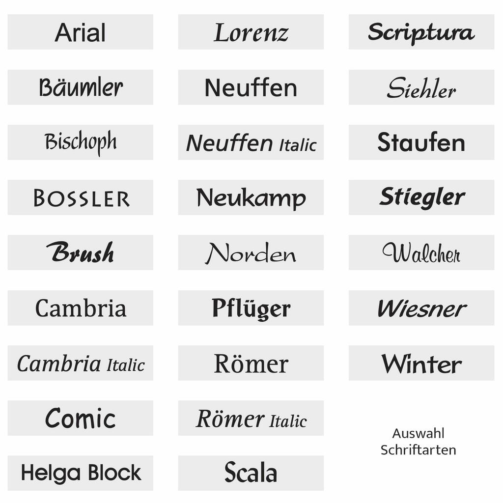 Individuelle Schrifttafeln zur Erinnerung