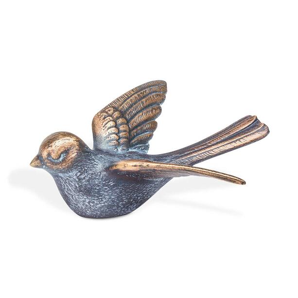 Die Bronze ist extrem robust gegenüber Frost, Nässe sowie Hitze und sehr langlebig. Die Patina wird per Hand aufgetragen und führt aufgrund variierender Farbnuancen zu einer Einzigartigkeit jeder Skulptur. Die Farbe kann somit leicht vom Bild abweichen. Die Reinigung sollte ohne chemische Substanzen erfolgen, um die Schutzschicht nicht zu zerstören und kann einfach mit einem feuchten Tuch erfolgen. Der Grabschmuck wird für die Befestigung an einem Sockel mit Bohrungen an der Unterseite ausgestattet. Passende Gewindestifte liegen der Lieferung bei. Die Fertigung mit einer Cortenstahlpatina ist möglich. Im Gegensatz zu richtigem Cortenstahl liegt der Vorteil im Nicht-Verlaufen der Rostpatina bei Nässe. Aufgrund des Hohlgusses sind die Skulpturen trotz der massiven Bronze recht leicht und können somit problemlos überall aufgestellt werden.